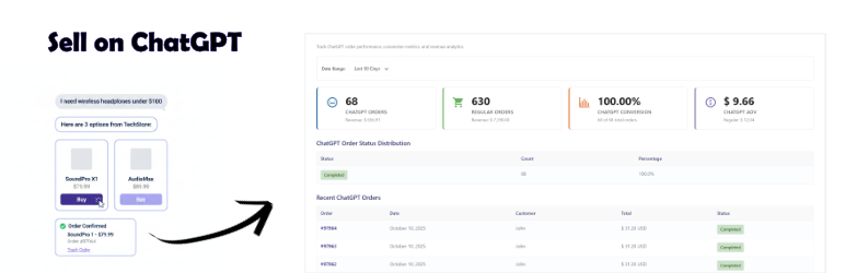 - Analytics Dashboard – Monitor ChatGPT order performance and conversion metrics